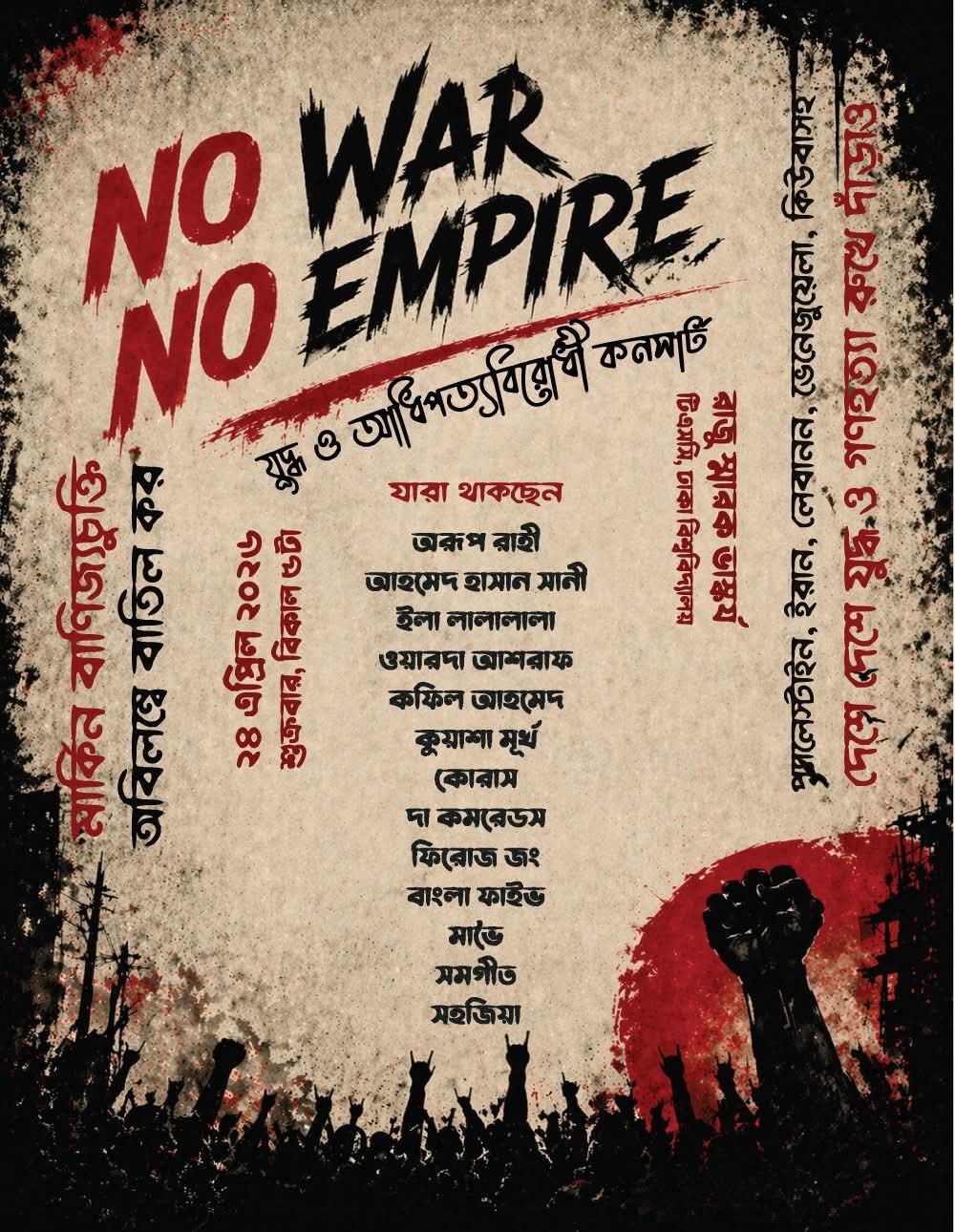 ‘যুদ্ধ ও আধিপত্যের বিরুদ্ধে বাংলাদেশ’ এর পক্ষ থেকে শুভেচ্ছা।